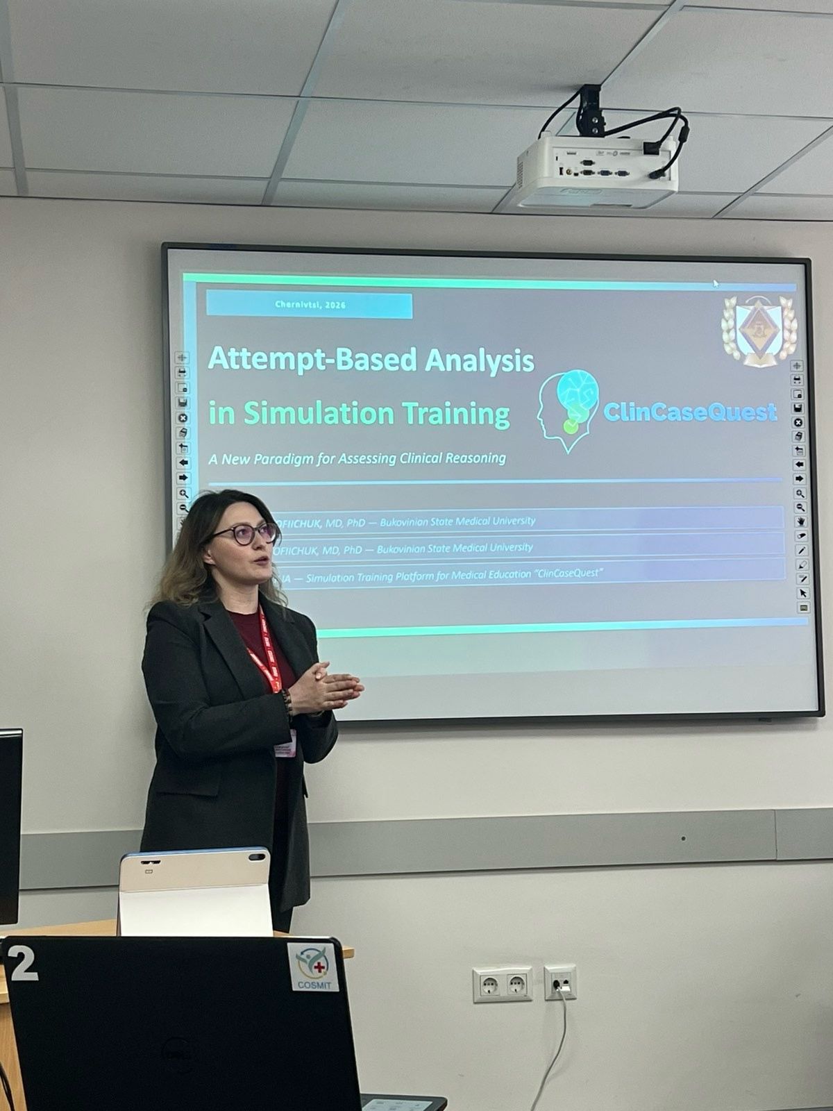 На научно-практической конференции с международным участием «МЕДИЦИНСКАЯ СИМУЛЯЦИЯ — ВЗГЛЯД В БУДУЩЕЕ», состоявшейся в Буковинском государственном медицинском университете, доктор философии, ассистент кафедры внутренней медицины, клинической фармакологии и профессиональных заболеваний Татьяна Антофийчук представила Attempt-Based Analysis — новый подход к анализу клинического мышления в симуляционном обучении, а также результаты исследования, проведённого с использованием платформы симуляционного обучения ClinCaseQuest.